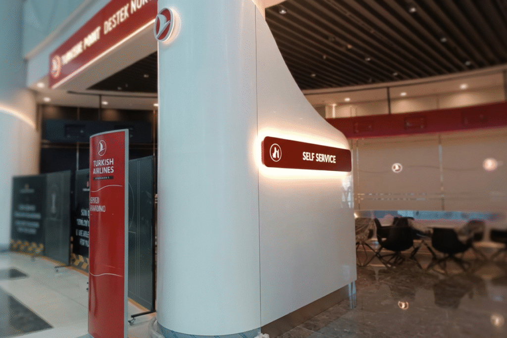 Türk Hava Yolları gibi global markalar için; yoğun insan trafiğine uygun, dayanıklı ve marka kimliğini yansıtan özel karşılama bankoları, bekleme alanları ve geçiş noktaları tasarlıyor ve uyguluyoruz.