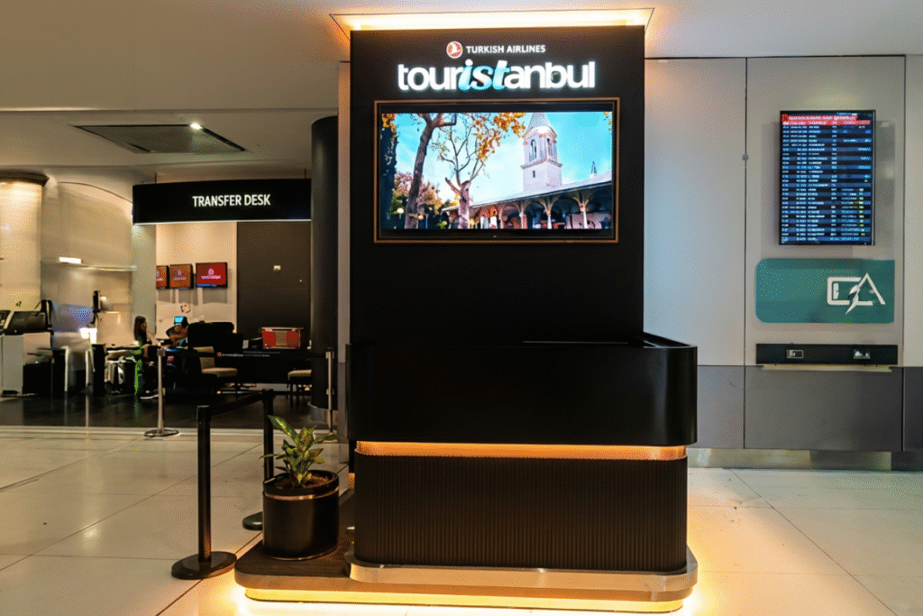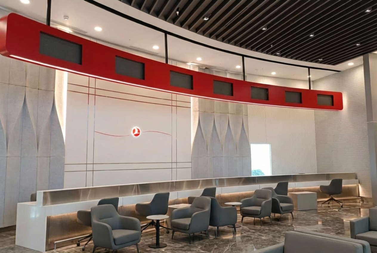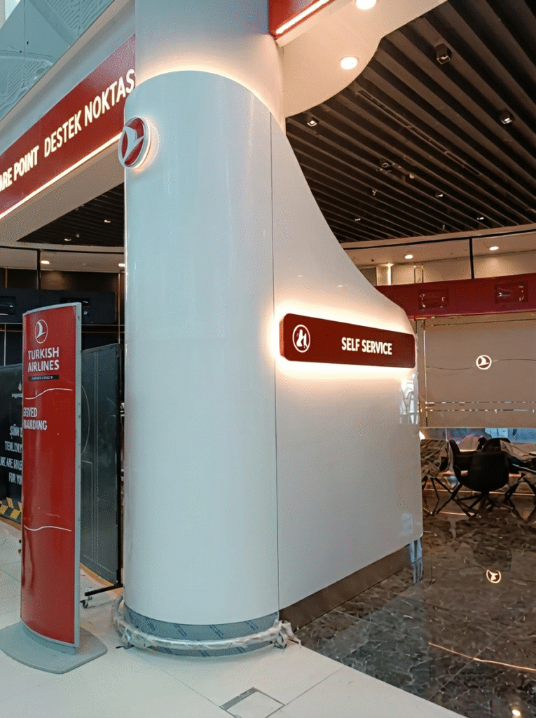 Havalimanı güvenlik prosedürlerine tam uyum ve kısıtlı zaman aralığında, operasyonu aksatmadan “gece montajı” stratejisiyle anahtar teslim bir uygulama gerçekleştirildi. Sonuç: Markayı en iyi şekilde temsil eden, fonksiyonel ve dayanıklı bir deneyim alanı.