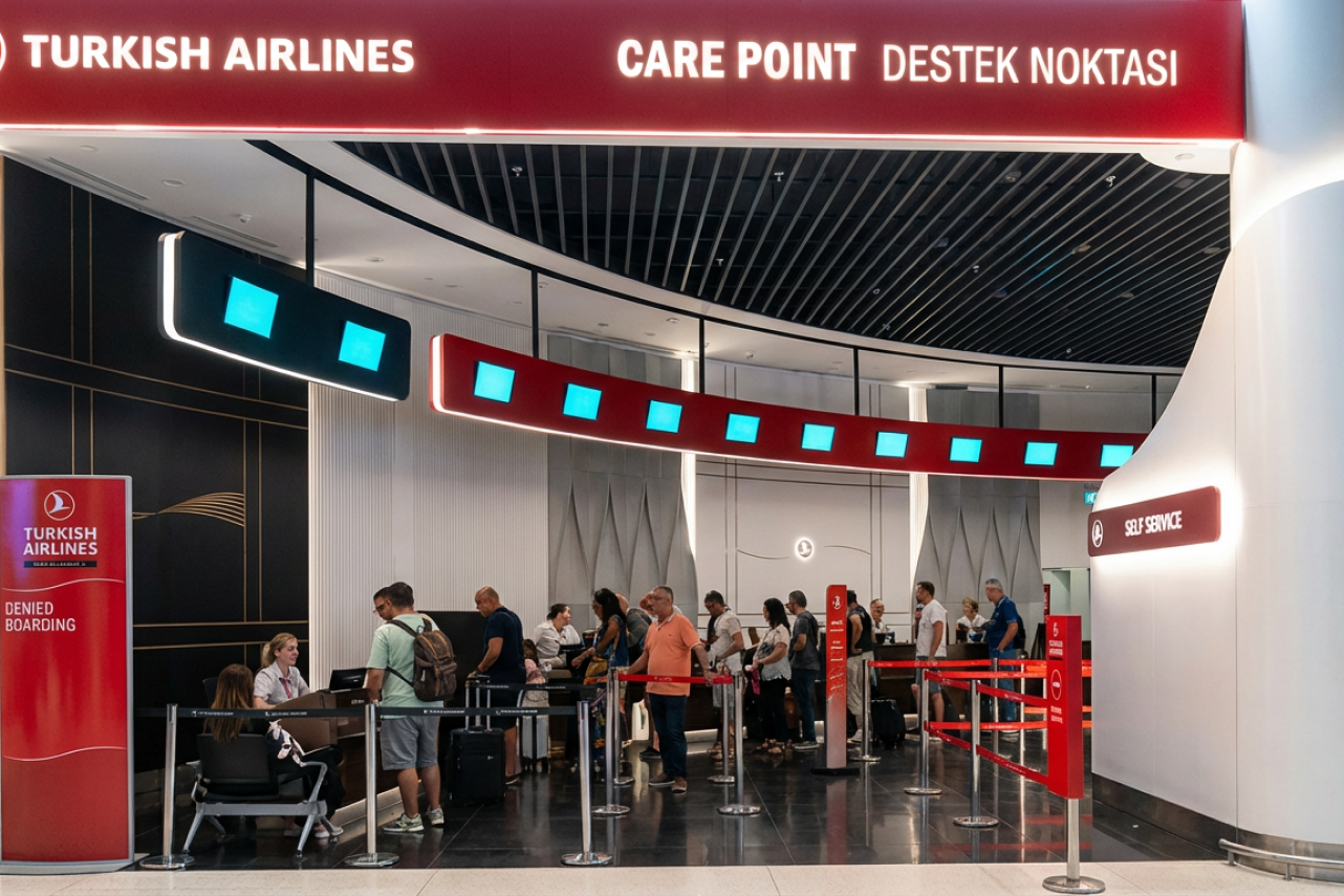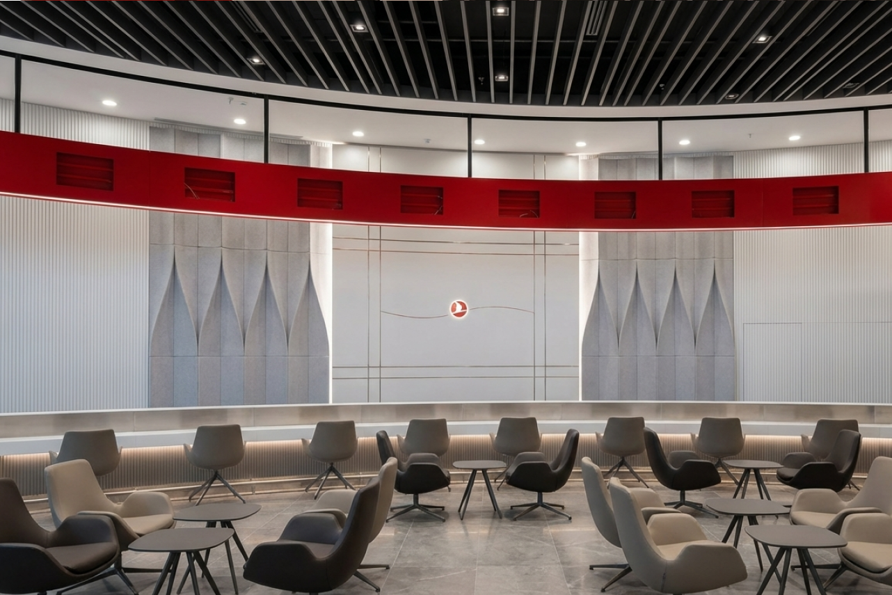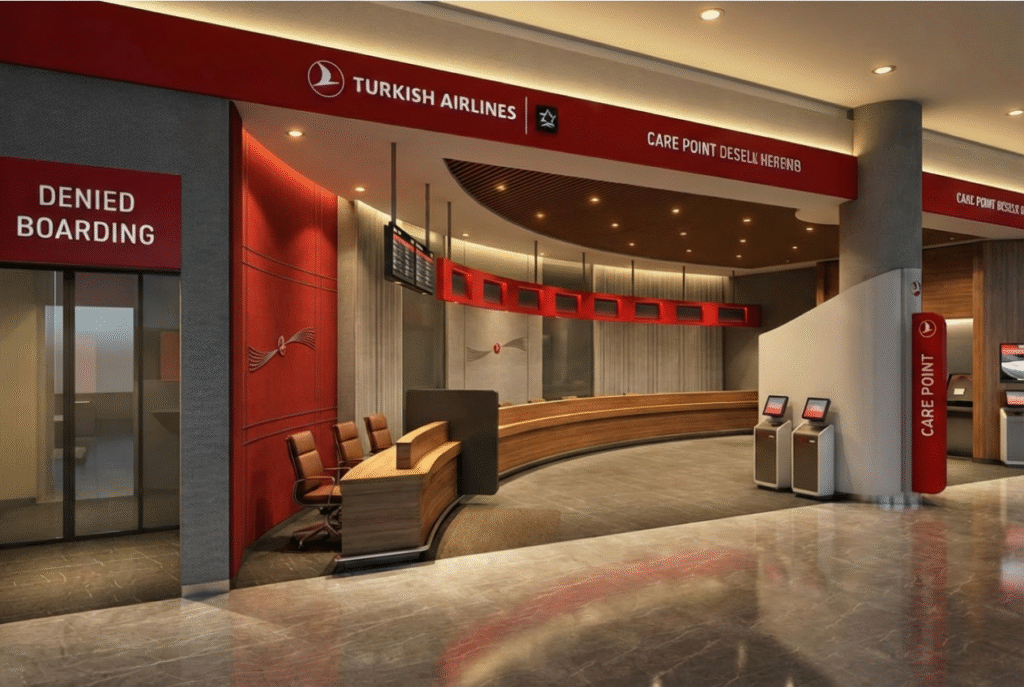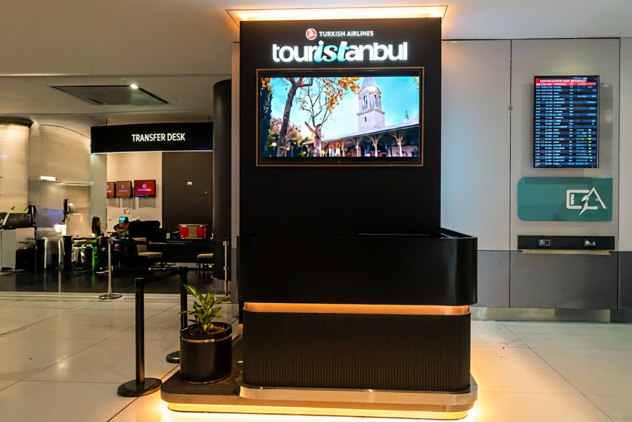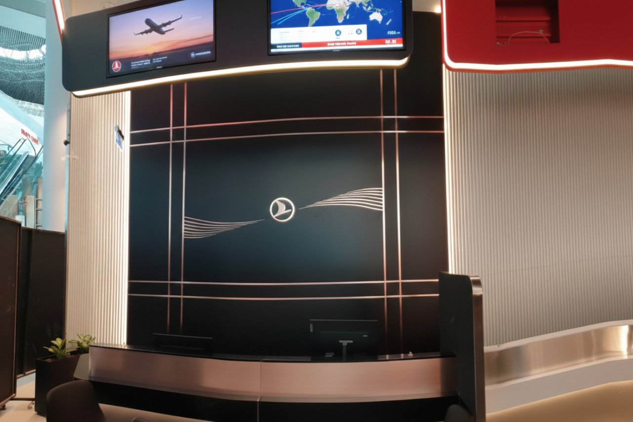 Türk Hava Yolları’nın global marka kimliğini, İstanbul Havalimanı’nın dinamik atmosferiyle buluşturan prestijli bir “Care Point” ve “Transfer Desk” projesi.