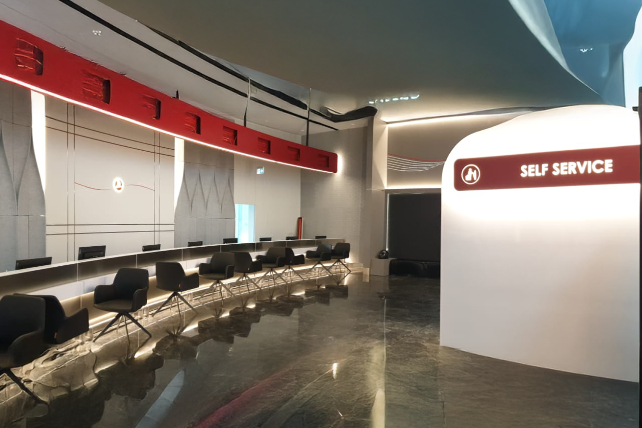Bu projede WIST olarak, sadece estetik bir tasarım sunmadık; havalimanının yoğun yolcu trafiğine dayanıklı, operasyonel verimliliği artıran ve markanın imza niteliğindeki kavisli hatlarını (flow) mekana yansıtan mühendislik çözümleri geliştirdik. Karşılama bankolarından tavan detaylarına kadar tüm ahşap ve metal bileşenler, kendi üretim tesisimizde milimetrik hassasiyetle üretildi ve sahada kusursuz bir şekilde montajlandı.